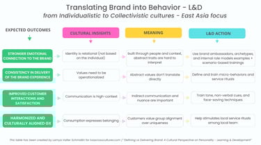 If teams are trained using Western frameworks built on abstraction, personality traits, and self-expression, there is a real risk of misalignment: the brand is clearly defined at HQ // But inconsistently understood and therefore inconsistently delivered on the ground.